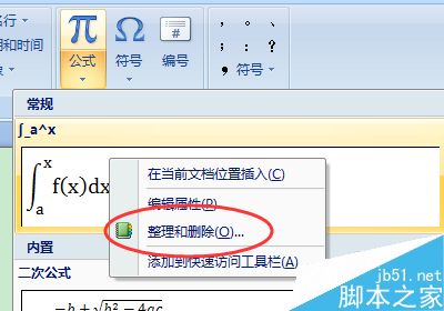 16、对现有的公式我们也可以对其整理和删除。右击公式,单击整理和删除按钮。