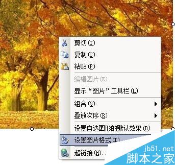 鼠标右键点下图片,弹出的菜单中点"设置图片格式";