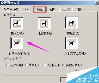 然后,再点"浮于文字下方";