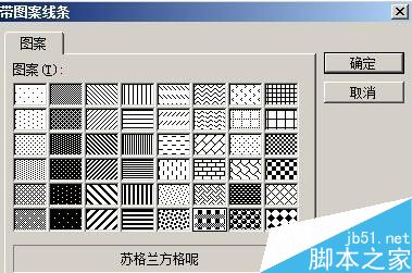 弹出"带图案线条"设置框,在框内的图案选项这里,选择自己想要的图案。