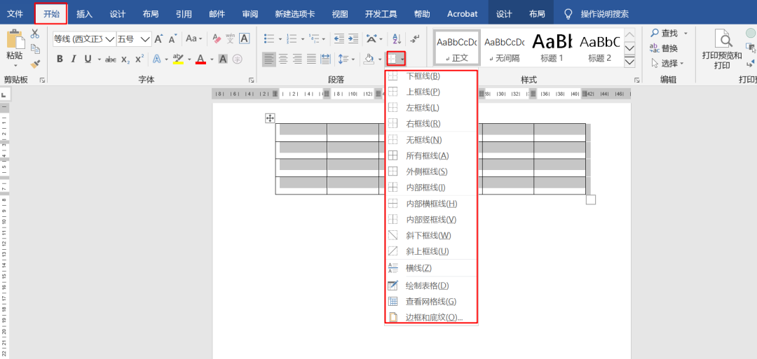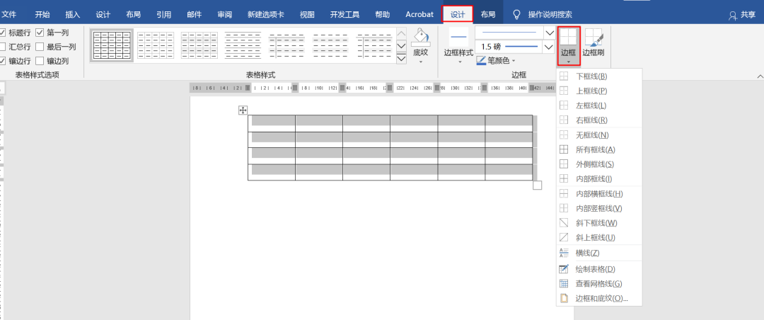 选中表格,点击表格工具——设计——边框,之后即可根据自己需要来设置。