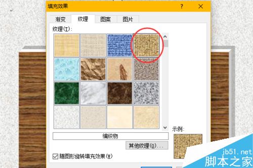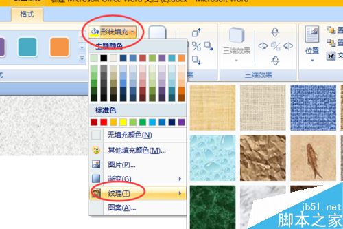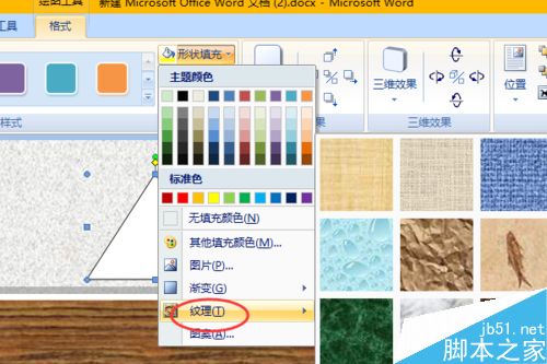 9、然后在形状填充中,选择纹理。在纹理列表中我们选择一种"深色木质"纹理。