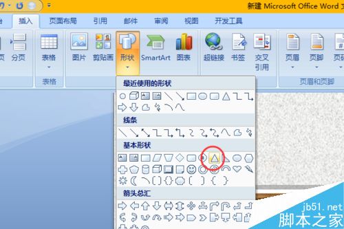 11、相框的基本框架已经有了,现在我们制作一个等腰三角形。仍然在插入选项卡中形状下面的基本形状中选择。