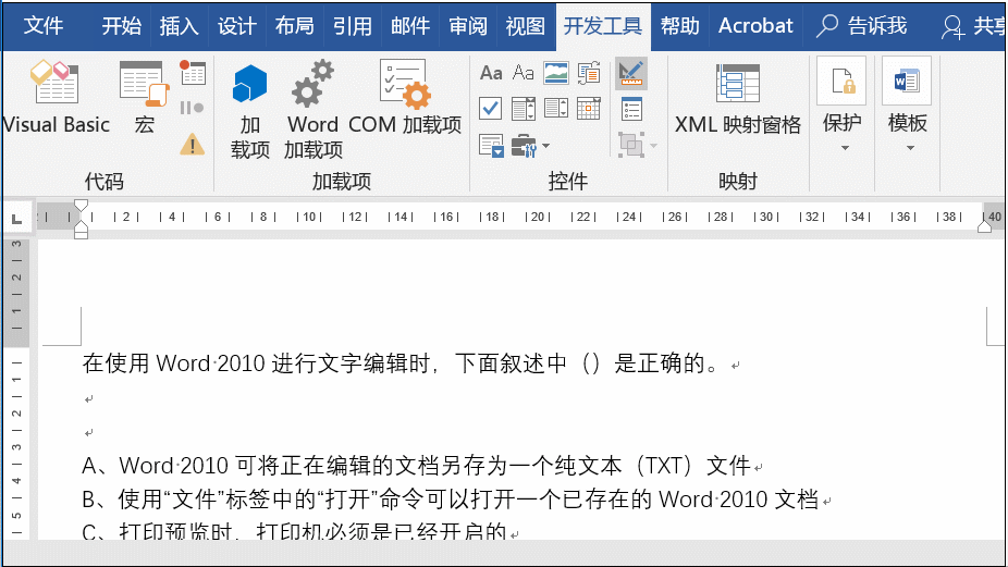 开发工具在Word中是需要启用才能看到的,所以遇到选项卡中没有开发工具的不用着急,可以通过以下方式来启用: