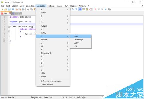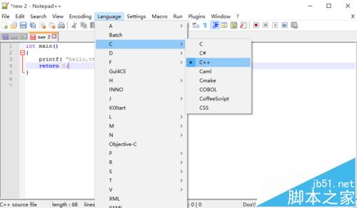1、将代码复制到 Notepad++。在菜单【Language】中选择编程语言的种类以格式化代码的样式。如下图所示: