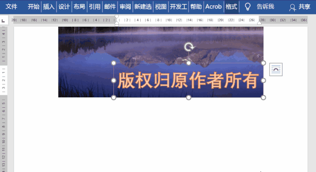 点击插入——文本——艺术字,选择一种格式,之后输入想要添加的文本,如“版权归原作者所有”,然后根据实际需要调整相应的位置即可。