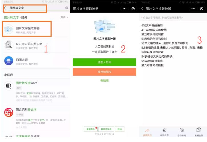 现在很多小程序都可以提取图片中文字,在微信中搜索“图片转文字”这时就会跳出相应的小程序,这里我选择的是“图片文字提取神器”,打开之后选择一张图片即可自动识别。