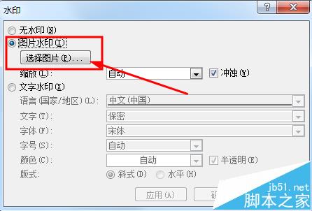 5、如果要用图片作为水印,选择"图片水印",然后点击"选择图片"即可,选择好图片确定就可以完成了。