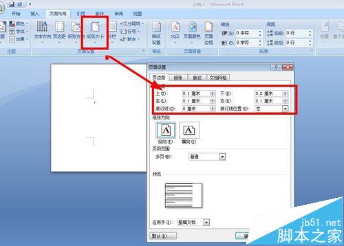 3、调整边距,再次选择纸"张选"项卡,单击"页边距"选项卡,将页边距的上、下、左、右分别设置为0.1、0.2、0.1、0.1厘米,然后单击"确定",效果如图。