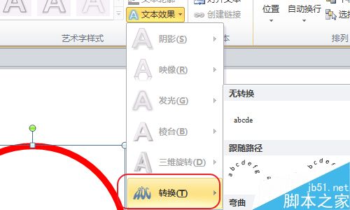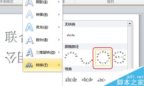 7、给出设置完成格式后的艺术字外形,并将艺术字的位置调节好适应圆形图形