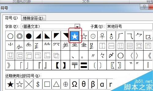 8、你也可以通过插入符号功能,插入一些特殊的符号如下图所示,这里插入一个五角星符号