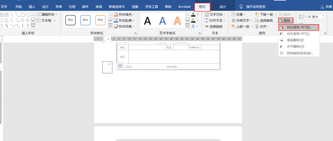 第三步:选中文本框,点击格式——排列——旋转——向右旋转90°。