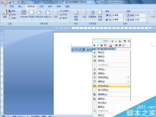 7、也可以在用鼠标选中文字后,点击鼠标右键,在弹出的菜单中,选择"文字方向"来进行设置。