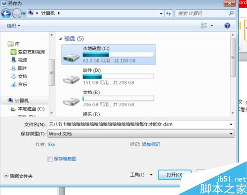 4、第四步是,在这个页面的找到要把文档保存的位置,比如D盘,桌面等。同时也可以修改相关的文件名。