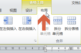 2、点击表格后,word2010菜单栏处会出现"布局"选项卡。此时点击"布局"选项卡。