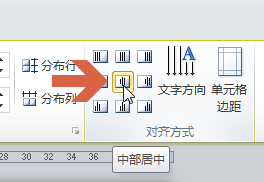 6、如果更改文字方向后表格内的文字偏向一侧。可以点击图中布局选项卡中的居中按钮对文字进行居中。