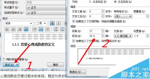 8、如果后面的很多的标题都需要修改的话,我们一个个的点击比较麻烦的话,我们就修改标题的模板,我们点击修改,点击格式,把段前段后的都调整好以后,我们点击保存到模板就行了。然后就方便了,点击标题重新来就好了。