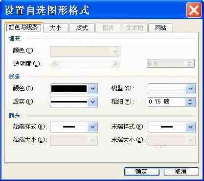 5、在"颜色与线条"选项卡中,可以设置直线的颜色和线形,粗细,箭头等。