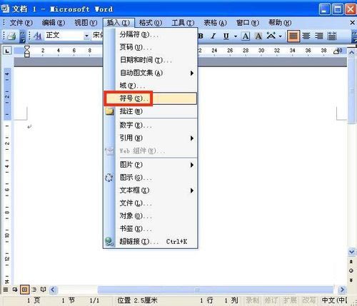 2、点击插入工具以后出现下拉菜单,在下拉菜单上面点击符号