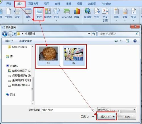 10、依次单击"插入,图片",然后选择准备好的素材图片,单击"插入":