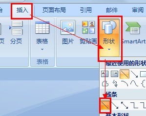 14、依次单击"插入,形状,直线",然后在第一二部分分界的位置,画一条横线(按Shift同时画横线,可以保证线条水平无倾斜):