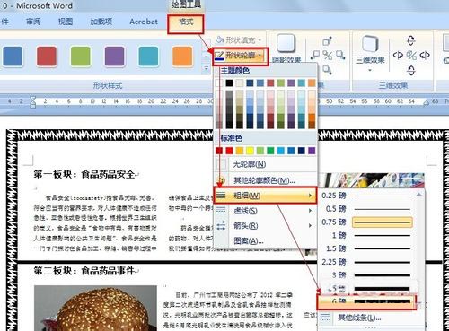 15、选择画出的线条,然后依次单击"格式,形状轮廓,粗细,6磅":