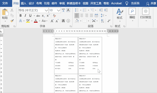 如图所示,如何把四张相同的内容排版到同一个文档上?本期Word小编与大家分享几个不错的小技巧。