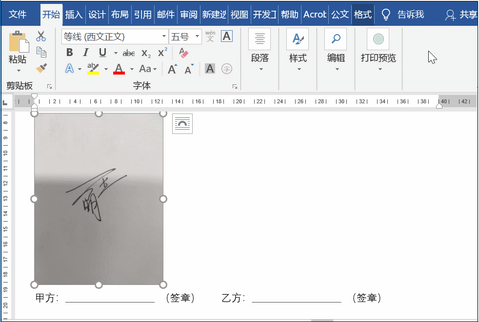 利用手机拍下老板的手写签名,之后传到电脑桌面,然后打开Word文档,点击文档中的插入——插图——图片,并且将图片缩放到合适的位置。