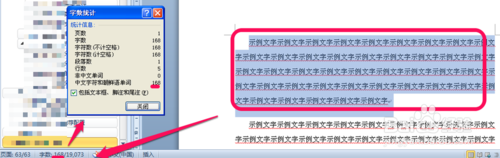 当然,也是可以在左下角的状态栏里可以看到,它的显示格式:所选文字数/总字数,点击可以查看详情,如图。