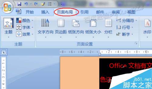 2、现在我们先从大到小——设置页面底色吧。将光标定位在本文档的任意位置都有可,直接点击"页面布局"选项: