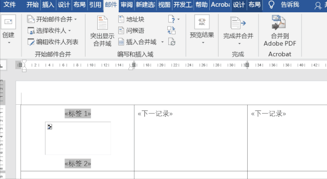 第三步:插入合并域,根据需要在合适的位置中插入标签名称,在单元格中间的位置则插入图片。