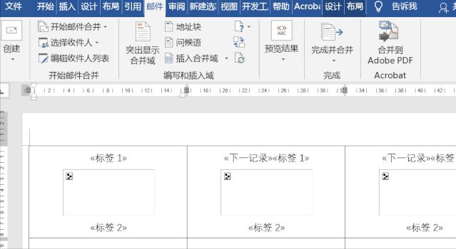 之后选中图片按Shift+F9切换域代码,选中里面的“123”,点击邮件——插入合并域,这里插入“标签2”,随后点击“更新标签”。