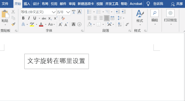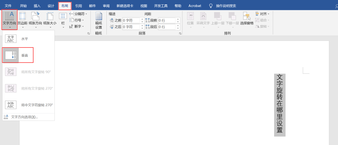 PS:这里要注意的是,直接更改文字方向会改变页面的大小,所以不改变页面大小,必须先将文本放在文本框中,然后旋转文本框。
