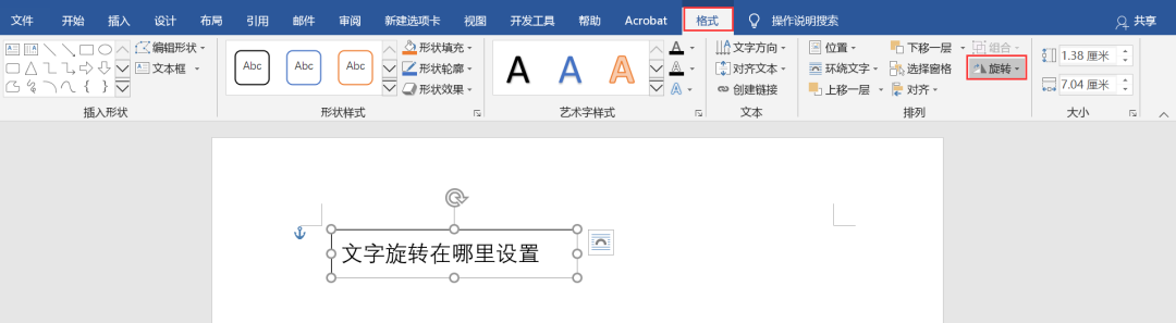 可以选中文本框,点击格式——排列——旋转。