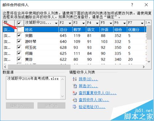 5、选择收件人——使用现有列表,根据步骤选择excel数据