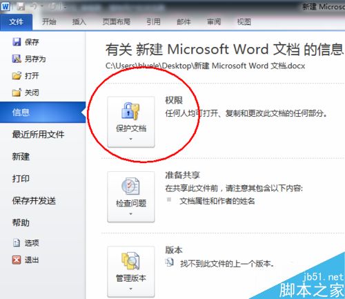 2、接着,选择"保护文档"(红圈)。