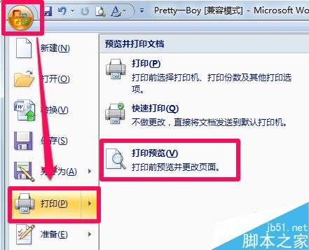 1、在word的打印预览中可以设置横向打印,首先点击左上角按钮,然后选择打印中的打印预览。