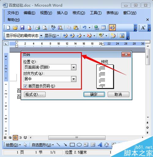 4、在页码的设置窗口里设置好位置和对其方式 如图