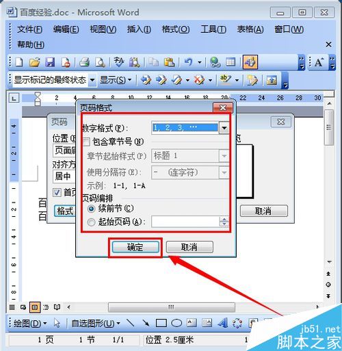 6、在页码格式窗口里设置好格式,然后点击"确定" 如图