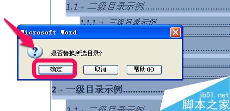 6、我们对每一级别的目录进行设置修改后,点击确定后,会弹出替换的提示框,点击确定,就把默认的word目录格式替换成我们自己设置的了。
