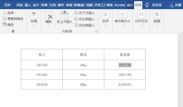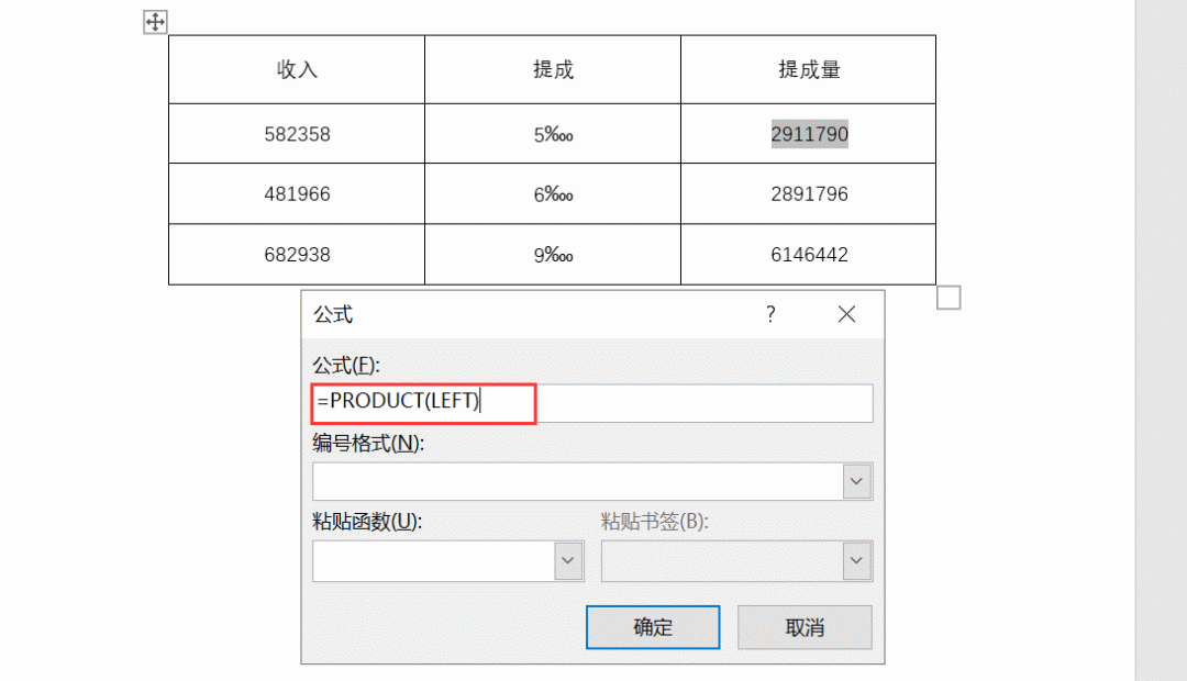 这时可以点击布局——数据——公式,然后在公式中输入=PRODUCT(LEFT)/10000,点击确定,之后再将结果复制到表格其他表格中,之后按F9更新数据即可。