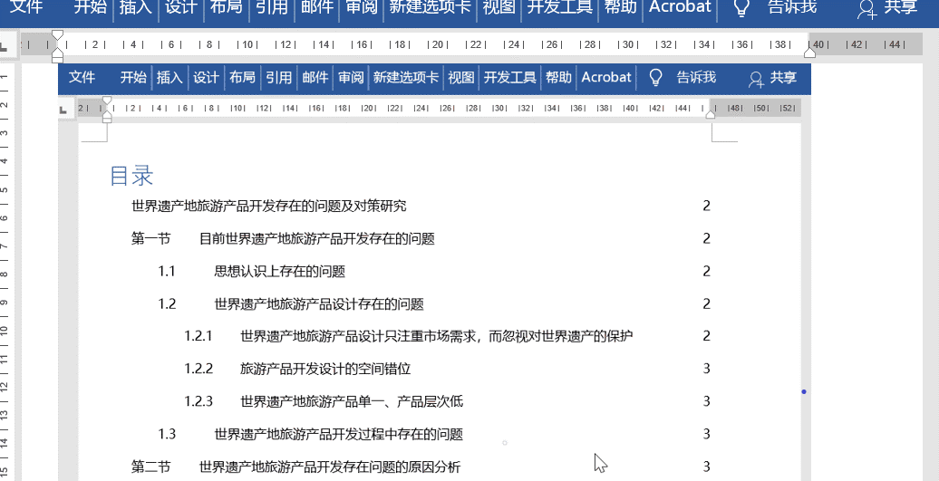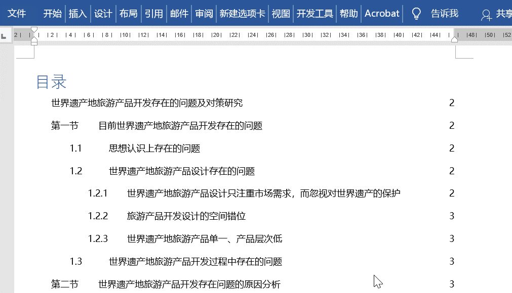 在插入自动目录时,你会发现目录没有出现省略号连接,而出现下图所示的情况,遇到这种情况该怎么处理?