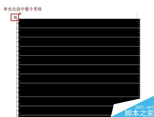 3、单击表格,表格左上角出现类似"十"字的标志,单击此标志选中整个表格。