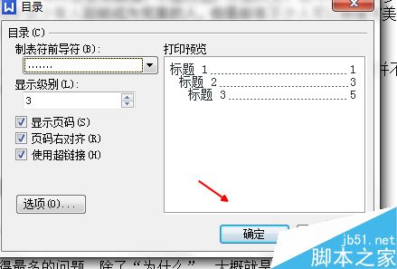 9、然后会出来有关目录格式的一些东西,一般默认的就可以了。直接点击确定。再点击确定的时候,你要把你的光标放到你要生成目录的地方