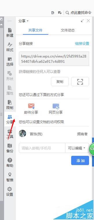 4、点击右侧菜单栏,选择分享,即可获得链接分享
