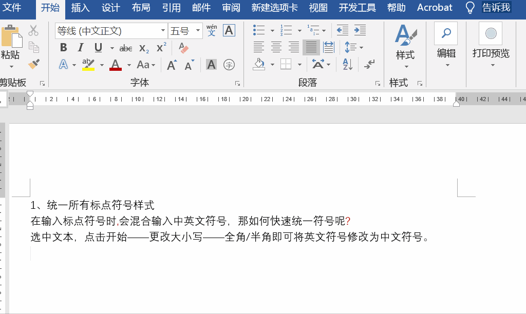 在输入标点符号时,会混合输入中英文符号,那如何快速统一符号呢?