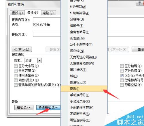 4、点击特殊格式按钮,在展示出来的选项中,选择图形按钮,点击该图形按钮,即可