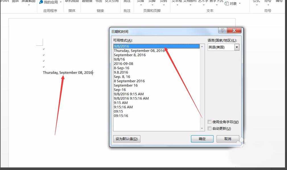 5、打开【日期和时间】对话框,选择需要的时间和日期格式,点击【确定】。