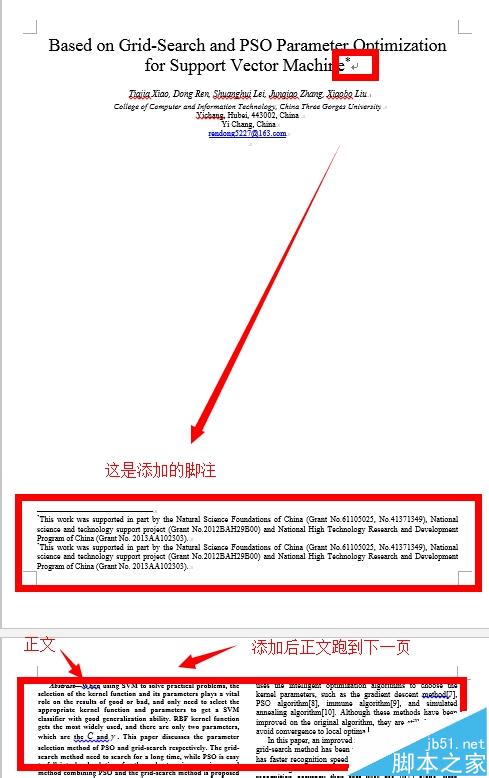 1、当添加脚注的时候出现分栏后的正文跑到下一页去了,如下图所示。