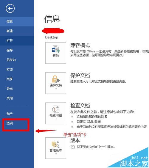 2、打开"word选项卡",单击"文件"菜单项,然后点击"选项",具体操作如下: